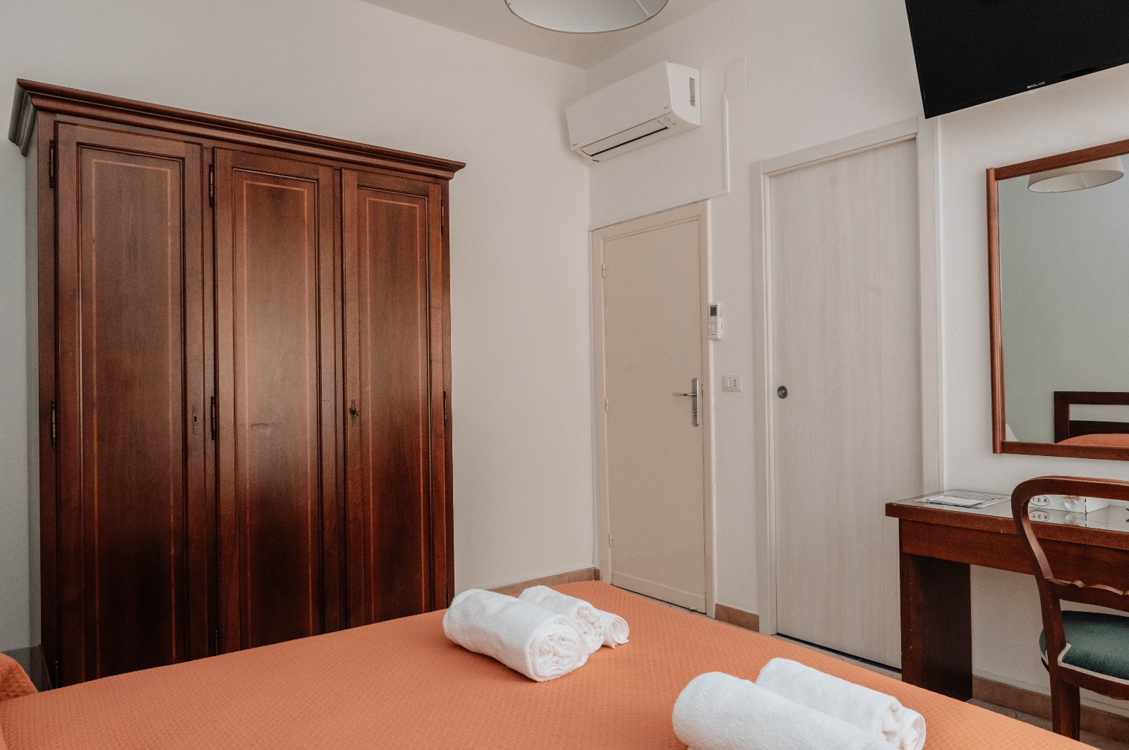 La struttura è dotata di 2 ampie camere da letto con bagno in camera, ogni camera è dotata di smart TV - Wifi - Aria Condizionata - asse e ferro da stiro - shampoo e bagnoschiuma - Phone - Bollitore e mini frigo con 2 bottigliette d'acqua in omaggio per gli ospiti.